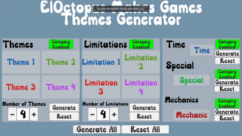 Whether you're gearing up for a global game jam or just practicing your skills, ElOctopusMakesGames - Theme Generator is the perfect companion to fuel your imagination and get those creative juices flowing. Join our community of passionate game developers and let the inspiration begin!